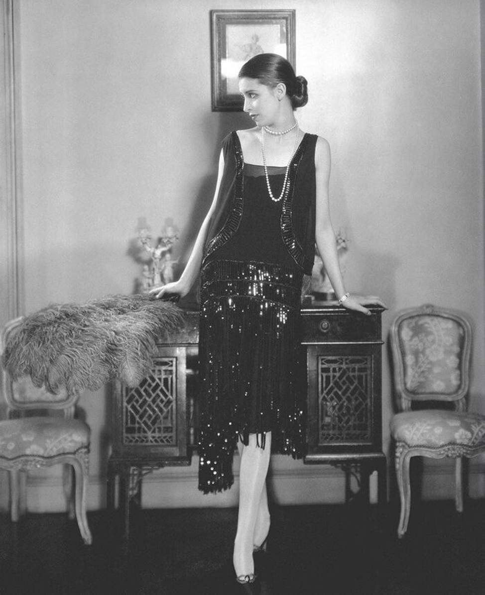 Не менее популярны были перья и сверкающие стразами заколки. Эффектные ободки в египетском стиле довершали образ современной богини образца 30-х годов прошлого столетия. |
