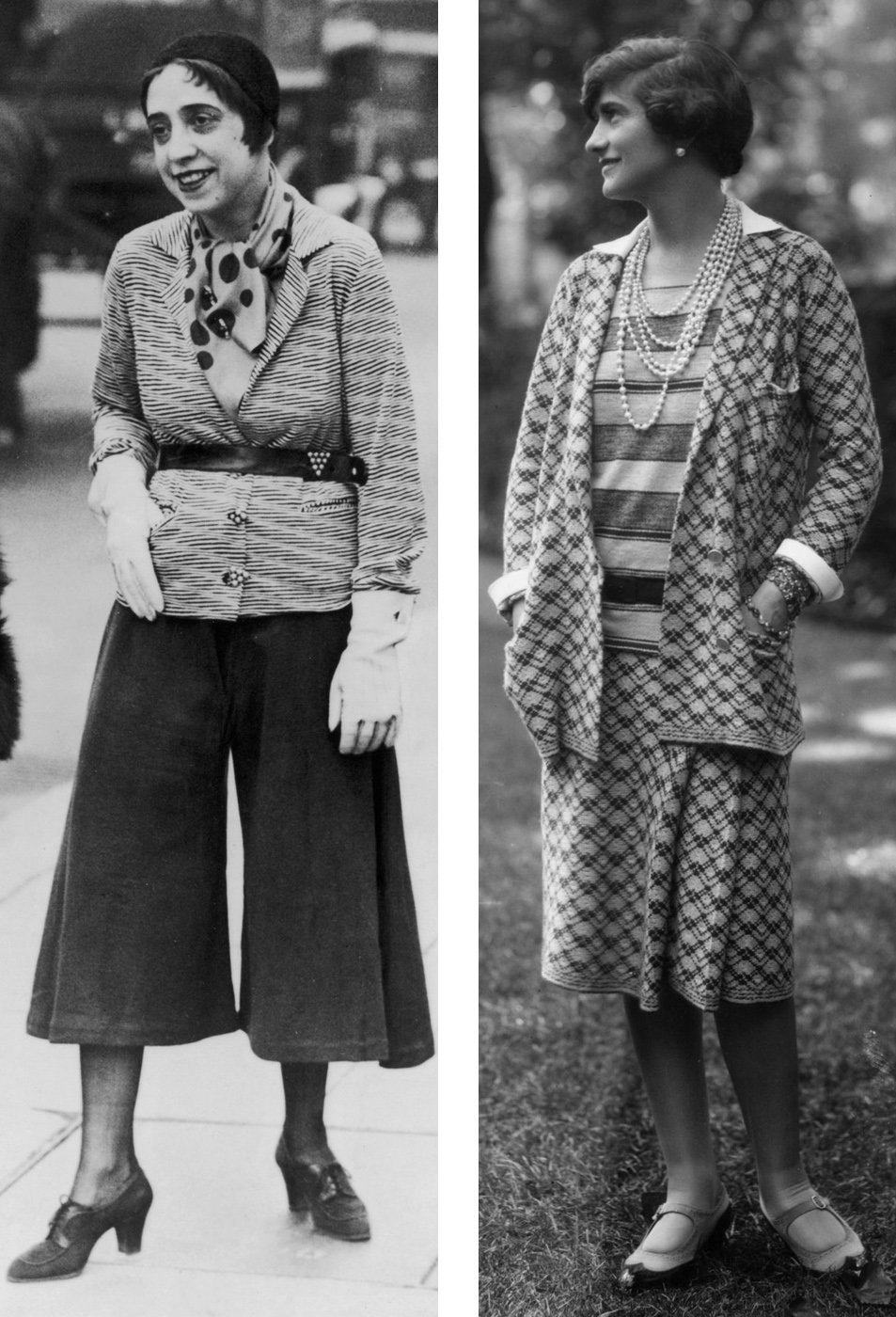 В 30-е в массовый обиход входят застежки-молнии. Пуговицы превратились в дефицит — и их стали активно заменять более дешевыми и простыми в производстве молниями. По тем же причинам стали чаще применяться недорогие и даже грубые ткани: вискозу, акрил, хлопок, простую шерсть. Окончательно входят в моду брюки, которые еще совсем недавно многим казались вызывающими. Ткани на них нужно было меньше, а работать в них было удобнее — и выбор был сделан сам собой. Простых женщин поддержали и звезды Голливуда: Марлен Дитрих нередко тогда появлялась на экране в брюках и даже мужских костюмах. |